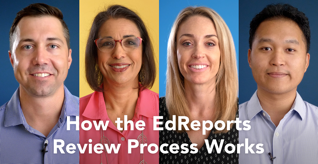 At the heart of EdReports is a commitment to a by educator, for educator instructional materials review process. Educators design our review rubrics. Educators meet over several months to examine materials, gather evidence, and come to consensus on scoring recommendations. Educators are leading the way to support teachers with the tools and resources they need to ensure all students are college and career-ready.